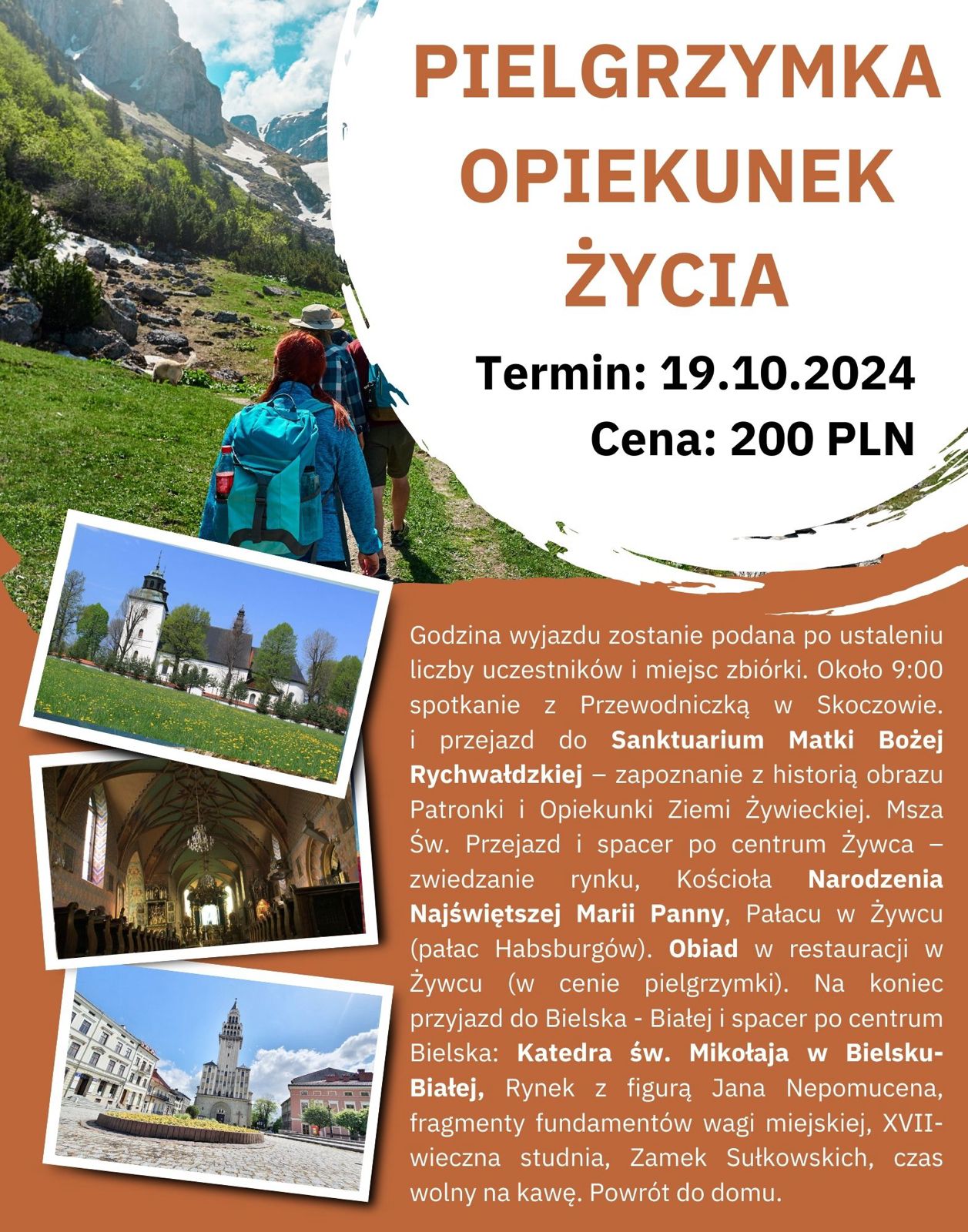 Podczas pielgrzymki odwiedzimy również malowniczy Żywiec oraz urokliwą Bielsko-Białą, by wspólnie przeżywać chwile modlitwy, refleksji oraz radości z bycia we wspólnocie.