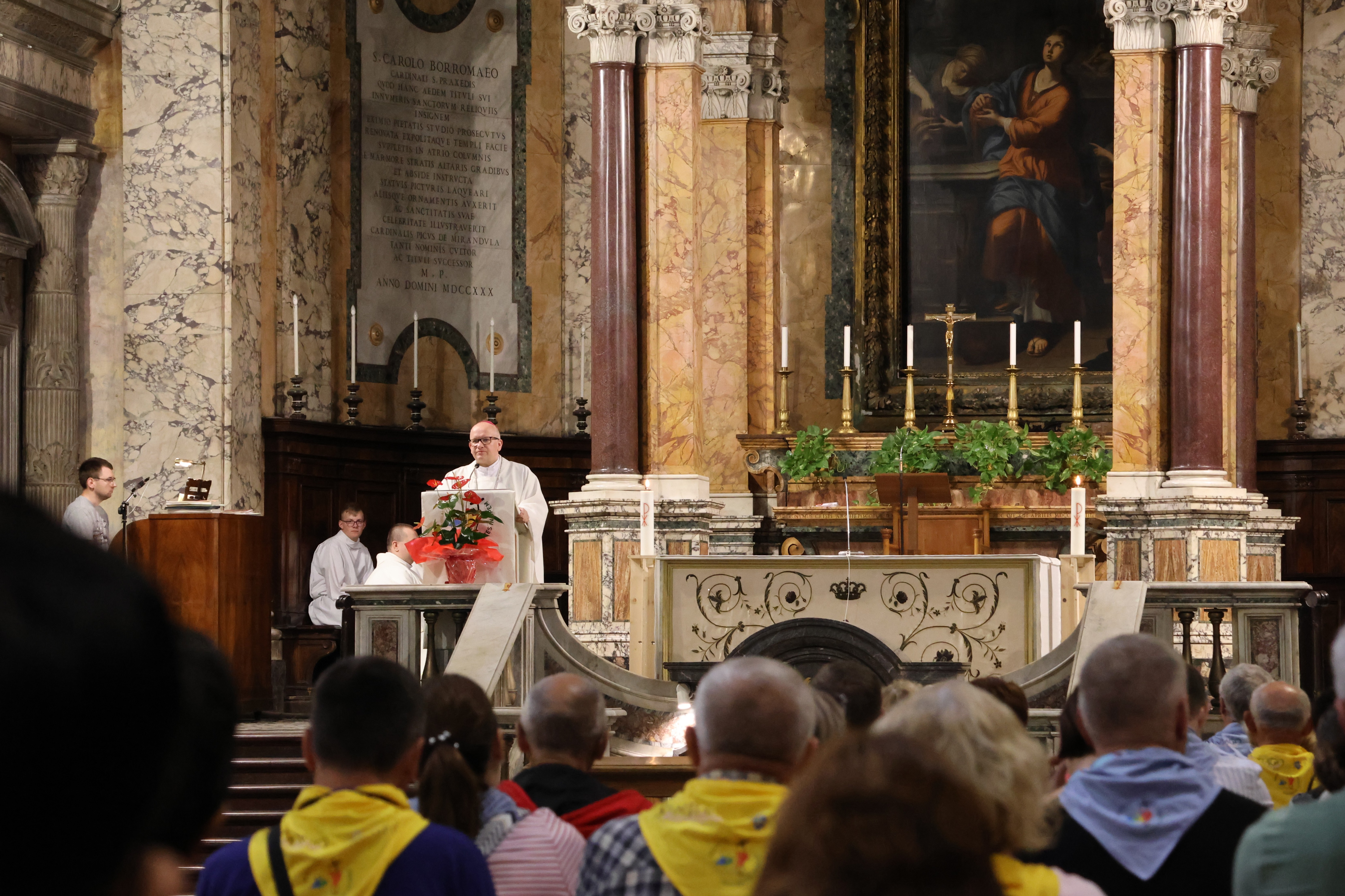 Wskazując na patronkę miejsca – św. Praksedę – bp Musioł przypomniał jej odwagę w czasie prześladowań i służbę wobec cierpiących chrześcijan. „Pielęgnowała, opatrywała i dawała schronienie chrześcijanom. (…) Tradycja mówi, że zbierała gąbką krew męczenników i wyciskała ją do naczynia” – mówił, dodając, że ostatecznie sama poniosła męczeńską śmierć.