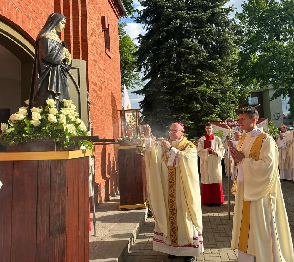 „Powinniśmy wykorzystać tę dzisiejszą odpustową liturgię, aby się w tej oazie, przy źródle, którym jest dla nas, ludzi wierzących, Eucharystyczny stół,  napić, i to łapczywie, nadziei, a na św. Ritę spojrzeć jako na niewiastę nadziei; nadziei, która nie była tanim optymizmem – zresztą śledząc jej życiorys – niewiele znajdziemy w nim kart, który by taki optymizm mogły sprawić; nadziei, która nie była z założenia pogodnym patrzeniem na życie, ale była nadzieją bezwzględnie pokładaną w Bogu. Była owocem głębokiej w Niego wiary, a więc przekonania, że oddany Bogu ster życia sprawi, bez względu na to jakimi drogami będzie ono wiodło, na jakie burze napotka, jaki cierń i ból z nim związany zada, zawiniemy do portu zbawienia, co więcej – doświadczając wspólnoty wiary z innymi ludźmi – będziemy im w drodze do tego portu wsparciem” - powiedział biskup Waldemar Musioł podczas Mszy św. odpustowej ku czci św. Rity, która miała miejsce w niedzielę 25 maja w Sanktuarium św. Rity w Głębinowie. Świątynia ta w Roku Świętym 2025 jest oazą duchowości na szlaku wiary.