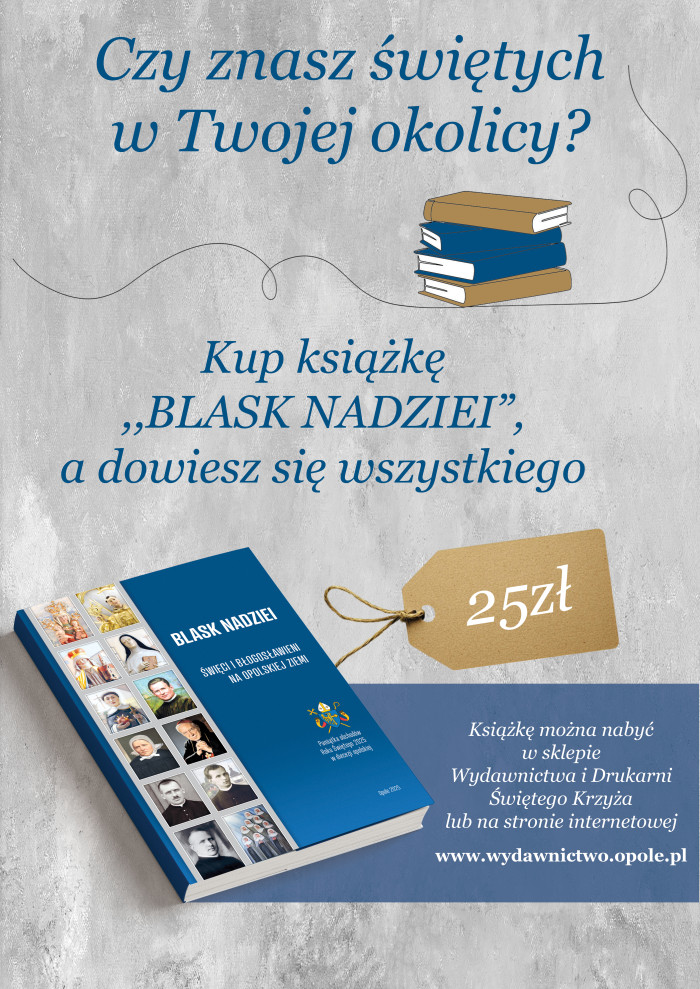 Zachęcamy do lektury książki „Blask nadziei. Święci i błogosławieni na opolskiej ziemi”, która przedstawia sylwetki, życie oraz apostolat świętych i błogosławionych związanych z opolską ziemią.
