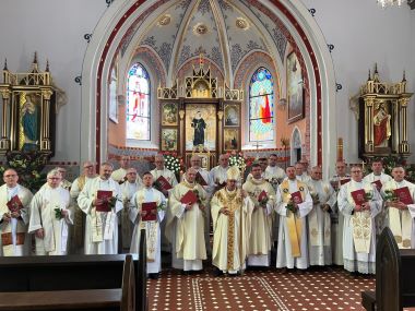 We wtorek 10 czerwca, w Sanktuarium św. Rity w Głębinowie, księża wyświęceni w 2000 roku obchodzili srebrny jubileusz kapłaństwa. Mszy św. przewodniczył bp Rudolf Pierskała, który w homilii ukazał głęboki sens powołania kapłańskiego, odwołując się do symboliki kielicha mszalnego – naczynia służącego Bogu i ludziom.