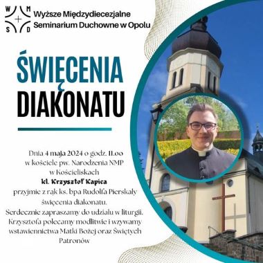 w dzisiejszą, czwartą Niedzielę Wielkanocną, Chrystus mówi o sobie, że jest Dobrym Pasterzem, który chce powierzone sobie owce przyprowadzić do Ojca. Swoją misję w szczególny sposób sprawuje przez tych, których powołał i obdarzył sakramentem kapłaństwa, aby prowadzili i umacniali powierzony sobie lud. Niestety, wielką troską napawa fakt, że coraz mniej jest tych, którzy zdecydowali się odpowiedzieć na to wezwanie Chrystusa. Obecnie w naszym Wyższym Międzydiecezjalnym Seminarium Duchownym w Opolu przygotowuje się do kapłaństwa zaledwie 19 kleryków dla dwóch diecezji: gliwickiej i opolskiej. Dlatego bardzo Was proszę, aby przez najbliższy miesiąc, począwszy od dzisiejszej niedzieli aż do Święta Chrystusa Najwyższego Kapłana, które w tym roku przypada 23 maja, w sposób szczególny modlić się w naszych parafiach, domach zakonnych, wspólnotach modlitewnych, ale również w naszych rodzinach i w osobistej modlitwie o nowe powołania do służby Bożej. Módlmy się również za tych, którzy już na powołanie odpowiedzieli i formują się w naszym seminarium czy też w domach formacji zakonnej. Prośmy, aby nie upadli na duchu, ale wsłuchując się w Bożego Ducha, rozwijali się na miarę powołania, które otrzymali od Chrystusa, Dobrego Pasterza.