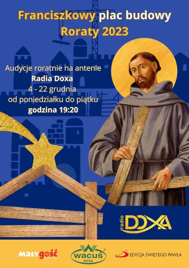 Zachęcamy do słuchania audycji roratnich w Diecezjalnym Radiu Doxa, które będą emitowane od 4 do 22 grudnia br. (od poniedziałku do piątku) o godz. 19.20. W tym roku ich tematyka nawiązuje do programu przygotowanego przez redakcję Małego Gościa Niedzielnego pod hasłem „Franciszkowy Plac Budowy”. Dziennikarze naszego radia wraz z duszpasterzami i przedstawicielami z różnych parafii naszej diecezji będą przybliżali słuchaczom tematy poruszane na Mszach św. roratnich. W programie, oprócz rozmów, będą również konkursy dla dzieci i młodzieży.