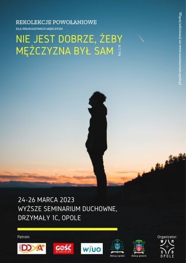 Wspólnota Wyższego Międzydiecezjalnego Seminarium Duchownego w Opolu zaprasza do udziału w rekolekcjach powołaniowych, które odbędą się w dniach od 24 do 26 marca br. Rekolekcje pt. „Nie jest dobrze, żeby mężczyzna był sam” (Rdz 2, 18a) skierowane są dla pełnoletnich mężczyzn, którzy pragną rozeznać swoją drogę życia. Celem tego czasu będzie ukazanie, że powołaniem mężczyzny są przede wszystkim relacje, które przeżywa się na każdej drodze życia. W rekolekcjach, oprócz kleryków i księży moderatorów WMSD w Opolu, udział wezmą także zaproszeni mężczyźni, którzy wybrali i realizują powołanie małżeńskie, kapłańskie, do życia w samotności oraz konsekrowane. Koszt udziału wynosi 50 zł. Zapisy i szczegółowe informacje na stronie www.seminarium.opole.pl.