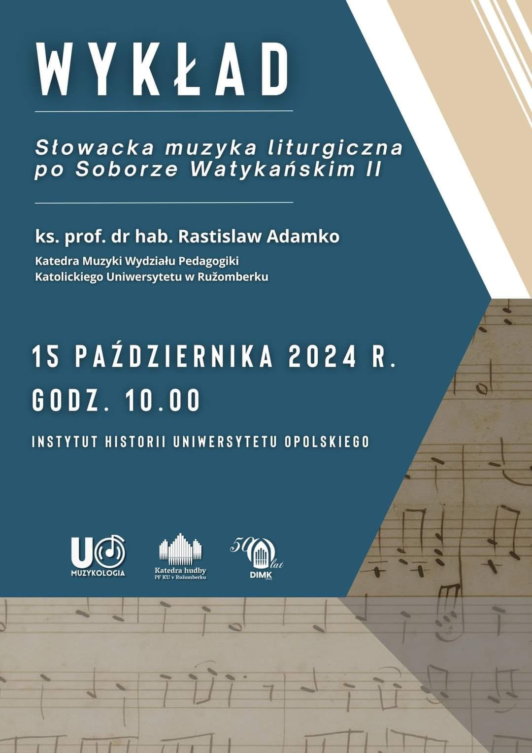 Ponadto we wtorek 15 października o godz. 10.00 w Instytucie Historii UO ks. prof. dr. hab. Rastislav Adamkp (UK Rożomberk, Słowacja) zaprezentuje wykład pt. „Słowacka muzyka liturgiczna po Soborze Watykańskim II”.