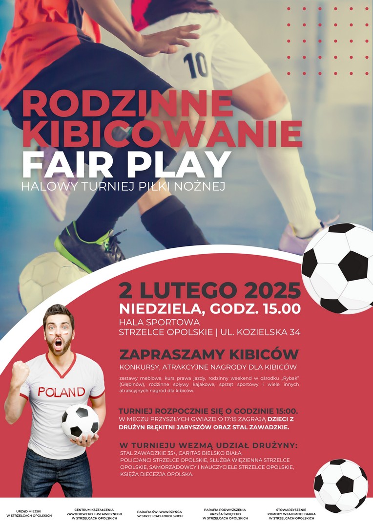 W niedzielę, 2 lutego br., o godz. 15:00 w Hali Sportowej przy ul. Kozielskiej 34 w Strzelcach Opolskich odbędzie się turniej piłkarski pod hasłem „Rodzinne kibicowanie Fair Play”.