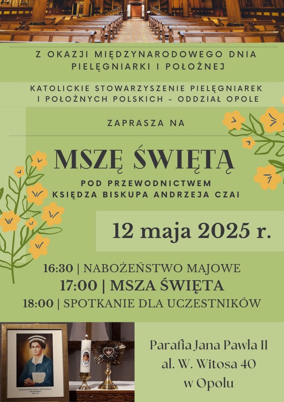 W poniedziałek, 12 maja – w Międzynarodowy Dzień Pielęgniarki i Położnej – Opolski Oddział Katolickiego Stowarzyszenia Pielęgniarek i Położnych wraz z diecezjalnym duszpasterzem Służby Zdrowia ks. Piotrem Bałosem zapraszają na wspólną modlitwę i spotkanie.