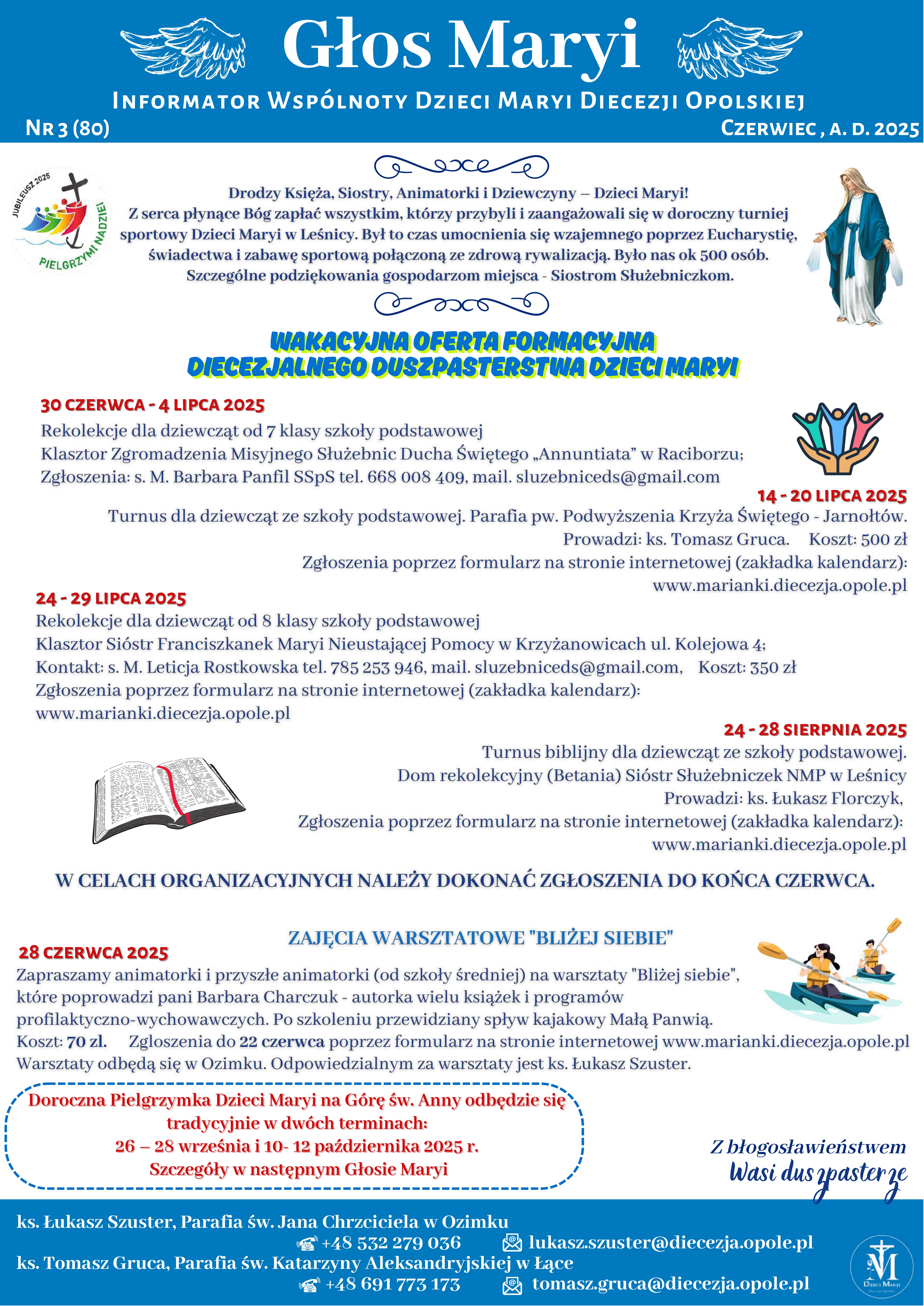 Zgłoszenia przez formularz online: marianki.diecezja.opole.pl w zakładce Kalendarz.