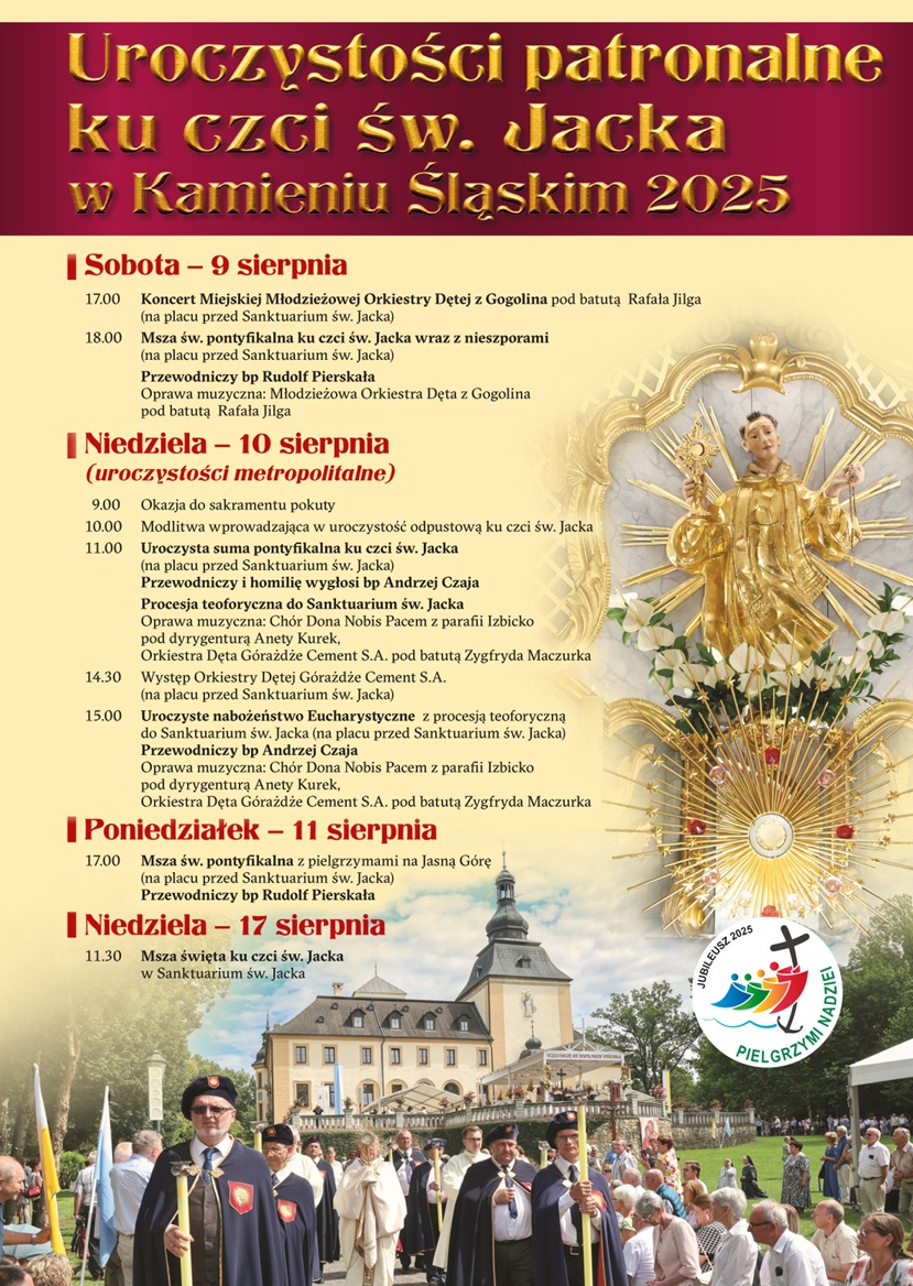 W dniach 9-11 oraz 17 sierpnia br. odbędą się metropolitalne obchody odpustowe ku czci św. Jacka w Kamieniu Śląskim.