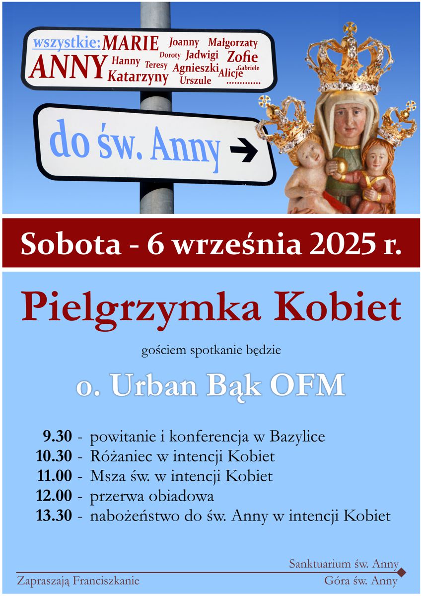 Ojcowie Franciszkanie z Góry Świętej Anny zapraszają na Pielgrzymkę Kobiet, która odbędzie się w sobotę 6 września br.