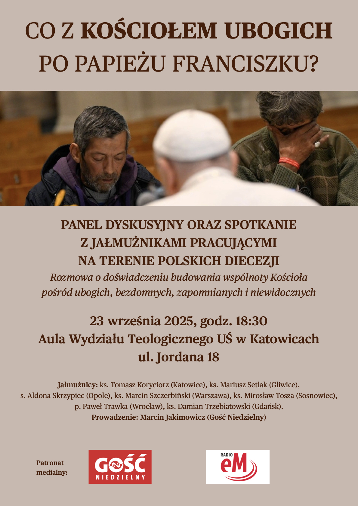 We wtorek, 23 września, o godz. 18.30, w auli Wydziału Teologicznego Uniwersytetu Śląskiego w Katowicach, odbędzie się otwarty panel dyskusyjny oraz spotkanie z jałmużnikami posługującymi w polskich diecezjach.