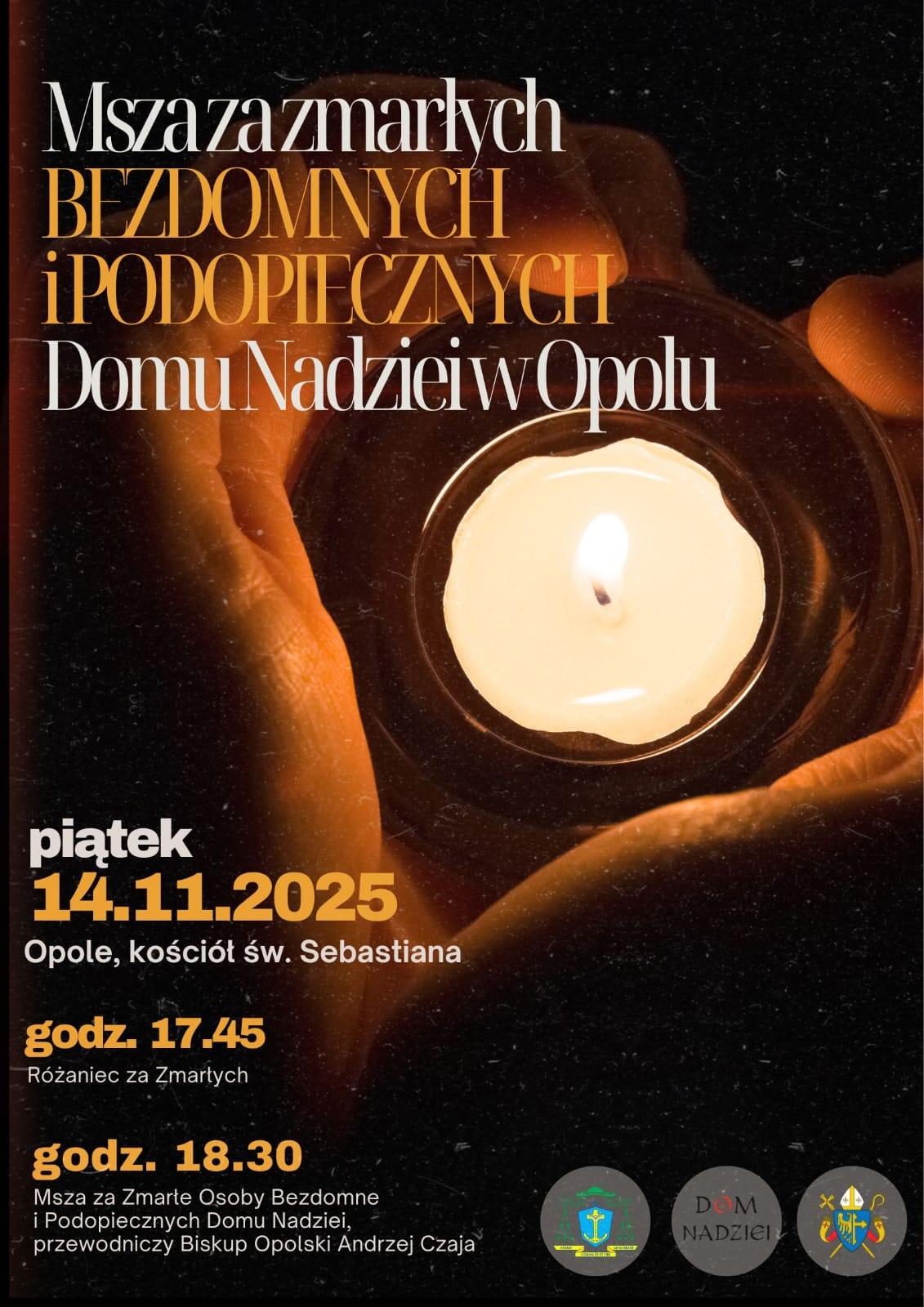 W piątek, 14 listopada o godz. 18.30, w kościele pw. św. Sebastiana w Opolu będzie sprawowana Msza św. w intencji zmarłych podopiecznych Domu Nadziei w Opolu i osób w kryzysie bezdomności.