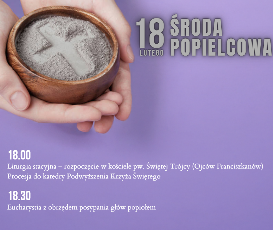 Rozpoczęcie o godz. 18.00 w kościele pw. Trójcy Świętej (kościół Ojców Franciszkanów). Następnie wierni wyruszą w procesji do katedry Podwyższenia Krzyża Świętego, gdzie o godz. 18.30 sprawowana będzie Msza św. z obrzędem posypania głów popiołem.