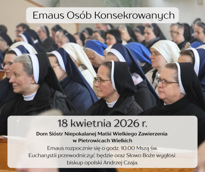 S. Jolanta Radomyska SSpS, referentka sióstr zakonnych, oraz o. Błażej Kurowski OFM, wikariusz biskupi ds. życia konsekrowanego, zapraszają wszystkie Osoby Konsekrowane naszej diecezji do udziału w Emaus Osób Konsekrowanych.