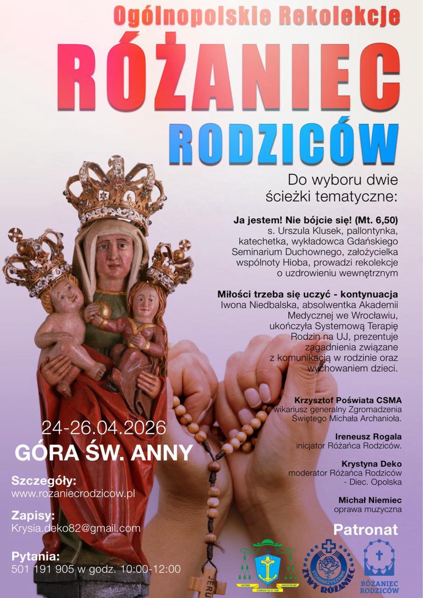 Rekolekcje Różańca Rodziców odbędą się w dniach 24-26 kwietnia w Domu Pielgrzyma na Górze Świętej Anny.