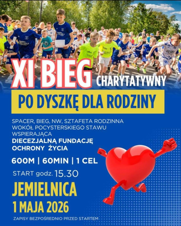 Dodatkowo o godz. 15.30 zaplanowano XI Bieg Charytatywny „Po dyszkę dla rodziny”, który – jako bieg sponsorowany – wspiera działalność Diecezjalnej Fundacji Ochrony Życia. Zapisy będą możliwe bezpośrednio przed rozpoczęciem biegu.