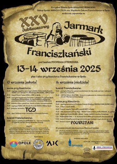 Ojcowie Franciszkanie z Opola zapraszają na XXV – Jubileuszowy – Jarmark Franciszkański, który odbędzie się pod hasłem „Pochwała stworzenia” w dniach 13-14 września br. (sobota-niedziela) na placu i ulicach przy klasztorze Franciszkanów w Opolu.