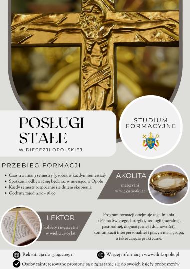 Do 15 września 2025 r. trwa rekrutacja do trzysemestralnego studium formacyjnego przygotowującego do pełnienia stałych posług lektora i akolity w diecezji opolskiej.