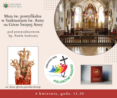Czwarta Eucharystia w ramach tego cyklu odbędzie się w niedzielę, 6 kwietnia, o godz. 11.30 w Sanktuarium św. Anny na Górze Świętej Anny. Przewodniczyć jej będzie i Słowo Boże wygłosi bp Paweł Stobrawa.