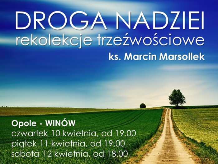 Duszpasterstwo Trzeźwości zaprasza do udziału w rekolekcjach, które odbędą się w dniach 10-12 kwietnia br. w kościele pw. Zesłania Ducha Świętego w Opolu-Winowie.