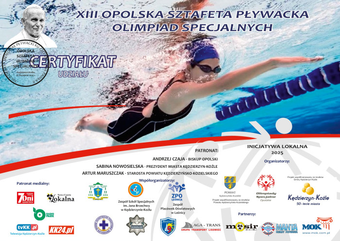 Celem XIII Opolskiej Sztafety Pływackie Olimpiad Specjalnych jest upamiętnienie 20. rocznicy śmierci św. Jana Pawła II. Sztafeta odbędzie się 2 kwietnia br. na pływalni przy Alei Jana Pawła II w Kędzierzynie-Koźlu.