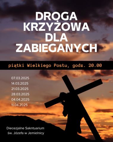Duszpasterze Diecezjalnego Sanktuarium św. Józefa w Jemielnicy zachęcają do udziału w nabożeństwach Drogi Krzyżowej „dla zabieganych”, które będą odprawiane we wszystkie piątki Wielkiego Postu (począwszy od 7 marca) o godz. 20.00 w kościele pw. Wniebowzięcia NMP w Jemielnicy, który w Roku Świętym jest oazą duchowości na szlaku wiary.