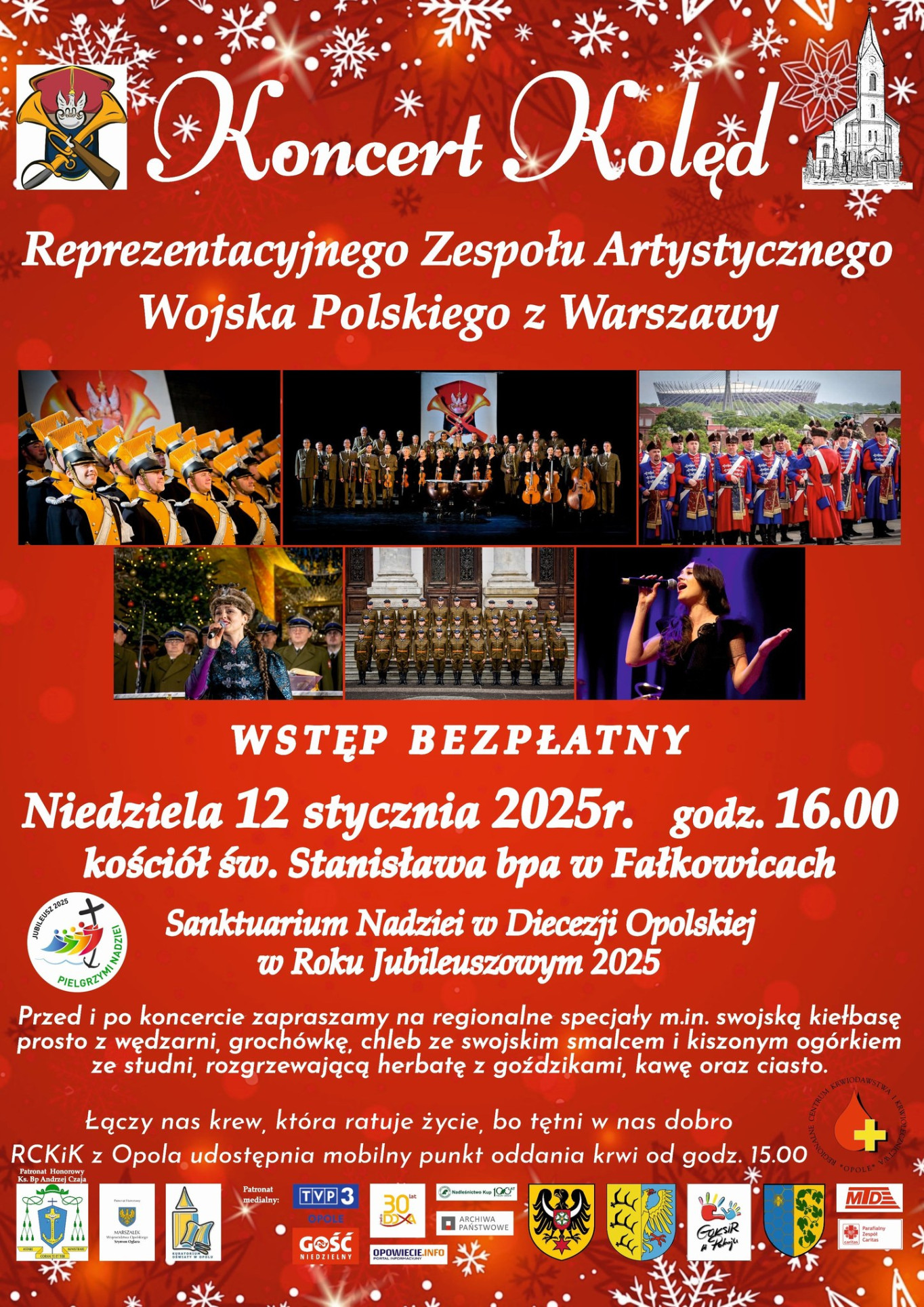 12 stycznia br. w kościele pw. św. Stanisława w Fałkowicach o godz. 16.00 odbędzie się Koncert Kolęd w wykonaniu Reprezentacyjnego Zespołu Artystycznego Wojska Polskiego z Warszawy.