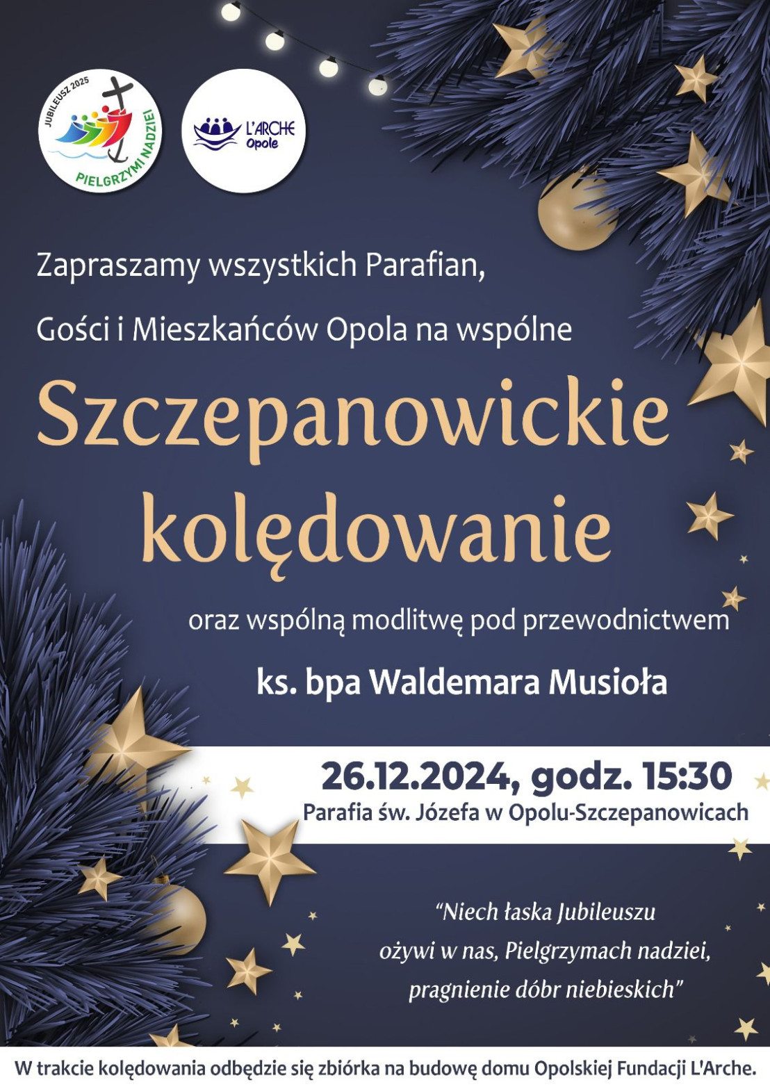 Duszpasterze parafii serdecznie zapraszają do wspólnego przeżywania radości Bożego Narodzenia przy śpiewie kolęd i w duchu pielgrzymiej nadziei.