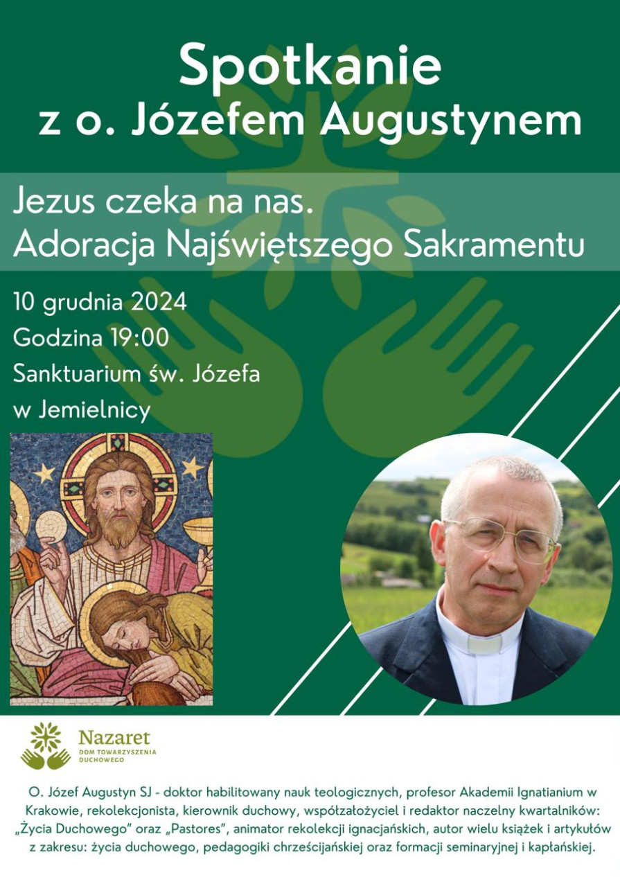 Podczas spotkania o. Józef Augustyn SJ wygłosi konferencję zatytułowaną: „Jezus czeka na nas. O adoracji Najświętszego Sakramentu”.