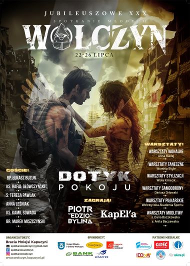 Bracia Mniejsi Kapucyni zapraszają do udziału w XXX Jubileuszowym Spotkaniu Młodych, które odbędzie się od 22 do 26 lipca br. w Wołczynie. Zaproszenie skierowane jest do ludzi młodych w wieku od 15 do 30 roku życia. W programie znajdą się spotkania z ciekawymi gośćmi (m.in. bp. Łukaszem Buzunem, s. Teresą Pawlak, br. Markiem Miszczyńskim, ks. Kamilem Sowadą) oraz warsztaty (m.in. wokalne, taneczne, samoobrony). Koszt udziału to 200 zł (cena obowiązuje do 1 czerwca) lub 250 zł (cena po 1 czerwca). Szczegółowe informacje (plan spotkania, informacje o zaproszonych gościach, oferowanych warsztatach) są dostępne na stornie internetowej: www.wolczyn.kapucyni.pl