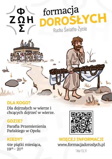 Animatorzy Ruchu Światło-Życie oraz ks. Grzegorz Rencz, proboszcz parafii Przemienienia Pańskiego w Opolu, serdecznie zapraszają na pierwsze spotkanie Wspólnoty Dorosłych Ruchu Światło-Życie, które odbędzie się w piątek 28 czerwca 2024 r. o godz. 19.15 w domu katechetycznym przy parafii Przemienienia Pańskiego w Opolu. Zaproszenie skierowane jest do osób dorosłych, które chcą rozwijać swoją wiarę. Spotkanie odbywa się będą w czwarte piątki miesiąc w godz. 19.15-21.15. Więcej informacji dla zainteresowanych tą wspólnotą oraz osób, które chcą założyć podobną grupę w swojej parafii, znajdziemy na stronie www.formacjadoroslych.pl.