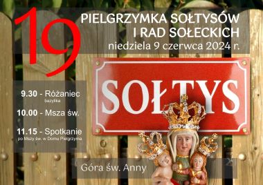 W niedzielę 9 czerwca 2024 r. na Górze Świętej Anny odbędzie się doroczna Pielgrzymka Sołtysów i Rad Sołeckich. Rozpoczęcie o godz. 9.30 modlitwą różańcową, o godz. 10.00 Msza św. Po Eucharystii spotkanie do Domu Pielgrzyma.