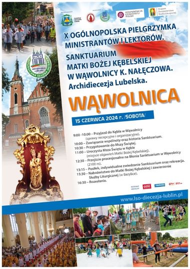 Podkomisja ds. Służby Liturgicznej Konferencji Episkopatu Polski zaprasza do udziału w X Ogólnopolskiej Pielgrzymce Ministrantów i Lektorów, która odbędzie w sobotę 15 czerwca br., w sanktuarium Matki Bożej Kębelskiej w Wąwolnicy koło Nałęczowa (archidiecezja lubelska). Informacje o zapisach i kosztach udziału na stronie internetowej.