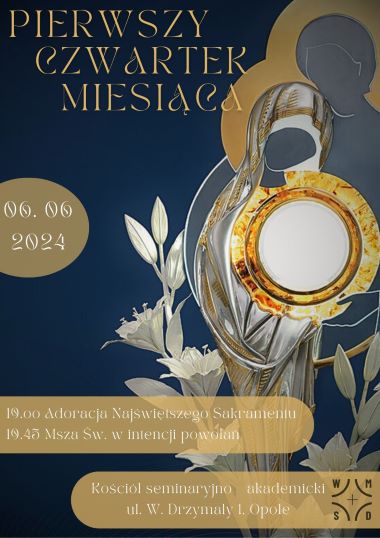 Wspólnota Wyższego Międzydiecezjalnego Seminarium Duchownego w Opolu zaprasza w najbliższy pierwszy czwartek miesiąca – 6 czerwca – osoby indywidualne, grupy zorganizowane (zwłaszcza członków Diecezjalnego Dzieła Modlitwy „Oremus”) oraz księży do kościoła seminaryjno-akademickiego na wspólną modlitwę o nowe powołania kapłańskie oraz za powołanych. W programie: o godz. 19.00 adoracja Najświętszego Sakramentu, a o 19.45 Msza św.