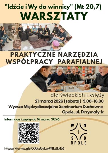 Ks. Wojciech Maciążek, rektor Wyższego Międzydiecezjalnego Seminarium Duchownego w Opolu, zaprasza księży do udziału w warsztatach pod hasłem: „Idźcie i wy do winnicy (Mt 20,7). Praktyczne narzędzia współpracy parafialnej”, które odbędą się w sobotę 21 marca w Wyższym Międzydiecezjalnym Seminarium Duchownym w Opolu.