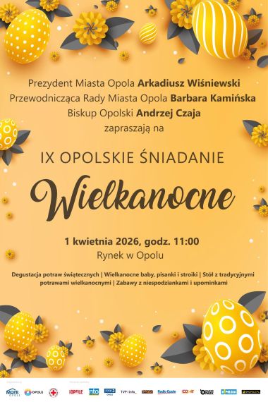 Organizatorami IX Opolskiego Śniadania Wielkanocnego są: Urząd Miasta Opola, Miejski Ośrodek Pomocy Rodzinie oraz Opolski Oddział Okręgowy Polskiego Czerwonego Krzyża. Wydarzenie honorowym patronatem objęli: Prezydent Miasta Opola, Przewodnicząca Rady Miasta i Biskup Opolski.