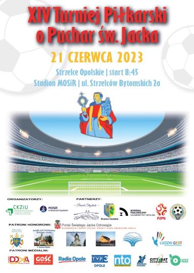 Ks. Jerzy Kostorz, dyrektor Wydziału Katechetycznego Kurii Diecezjalnej w Opolu,  zaprasza na XIV Międzydiecezjalny Turniej Piłkarski o Puchar św. Jacka, który odbędzie się w środę 21 czerwca 2023 r. na stadionie Miejskiego Ośrodka Sportu i Rekreacji w Strzelcach Opolskich (ul. Strzelców Bytomskich 2a). W tym roku inicjatywie towarzyszy hasło: „Najlepsze Ligi Europejskie”.