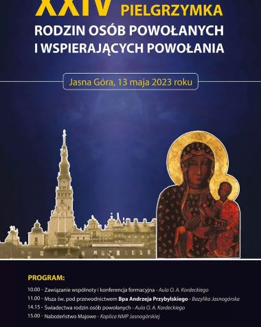 Wspólnota Wyższego Międzydiecezjalnego Seminarium Duchownego w Opolu zaprasza do udziału w XXIV Pielgrzymce Rodzin Osób Powołanych i Wspierających Powołania, która odbędzie się w sobotę 13 maja 2023 r. na Jasnej Górze. Zaproszenie jest szczególnie skierowane do rodziców i rodzin kleryków oraz osób wspierających powołanych. Pielgrzymka rozpocznie się o godz. 10.00 w Auli O. Kordeckiego, a o godz. 11.00 zostanie odprawiona Msza św. w bazylice jasnogórskiej. Całość zakończy się nabożeństwem majowym o godz. 15.00.