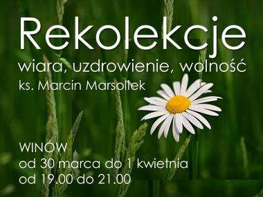 Ks. Marcin Marsollek, diecezjalny duszpasterz trzeźwości, zaprasza na rekolekcje trzeźwościowe, które odbędą się od 30 marca do 1 kwietnia (czwartek-sobota) w kościele pw. Ducha Świętego w Opolu-Winowie. Rozpoczęcie spotkań o 19.00, zakończenie ok. 21.00.