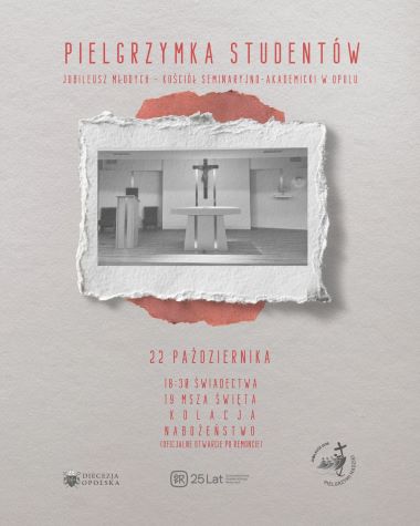 W środę, 22 października, odbędzie się Jubileuszowa Pielgrzymka Studentów. Rozpoczęcie Mszą św. o godz. 19.00 w kościele seminaryjno-akademickim w Opolu.