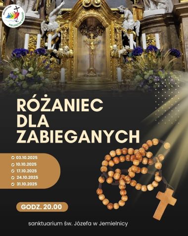 Duszpasterze Diecezjalnego Sanktuarium św. Józefa w Jemielnicy zapraszają wszystkich pracujących do późnego popołudnia oraz wszystkich chętnych na nabożeństwa różańcowe „dla zabieganych”, które będą odbywały się we wszystkie piątki października o godz. 20.00 w kościele pw. Wniebowzięcia NMP w Jemielnicy.