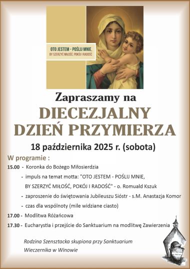 Ruch Szensztacki diecezji opolskiej zaprasza wszystkich chętnych na Diecezjalny Dzień Przymierza, który odbędzie się w sobotę, 18 października, w kościele parafialnym pw. Ducha Świętego w Opolu-Winowie.