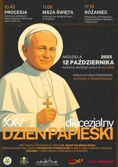 W niedzielę, 12 października, w parafii Bożego Ciała w Oleśnie odbędą się diecezjalne obchody 25. Dnia Papieskiego, przeżywane pod hasłem „Jan Paweł II. Prorok nadziei”.