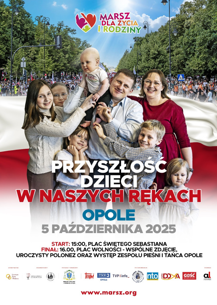 W niedzielę, 5 października, ulicami Opola przejdzie Marsz dla Życia i Rodziny organizowany przez Diecezjalną Fundację Ochrony Życia i Stowarzyszenie Rodzin Katolickich Diecezji Opolskiej. Towarzyszyć mu będzie hasło „Przyszłość dzieci w naszych rękach”.