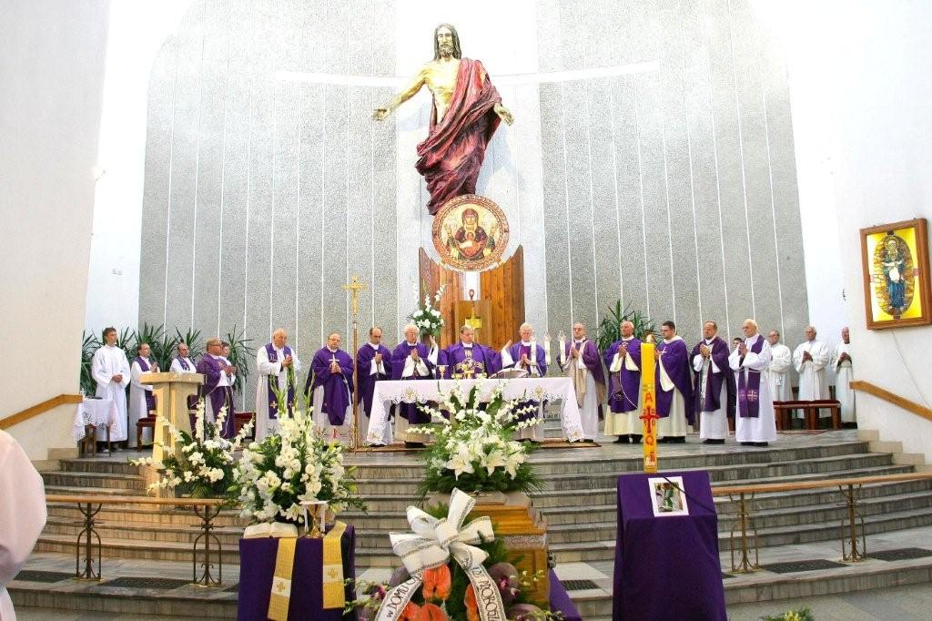 Nazajutrz, 17 sierpnia o godz. 11-tej rozpoczęła się msza św. pogrzebowa. Eucharystii przewodniczył oraz homilię wygłosił ks. biskup Jan Kopiec z Opola. Mszę św. koncelebrowało prawie 100 kapłanów. Byli m.in. księża pracujący kiedyś na misjach oraz misjonarze aktualnie przebywający na urlopie w kraju. Najliczniejszą grupę stanowili misjonarze z Togo, kraju w którym przez 20 lat pracował śp. ks. Janusz. Ponadto byli misjonarze z: Demokratycznej Republiki Konga, Wybrzeża Kości Słoniowej, Senegalu, Peru i Brazylii. Obecni byli także prawie wszyscy koledzy kursowi Zmarłego, aktualnie pracujący w Polsce.