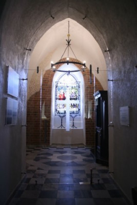 Kolejną niespodzianką okazało się zdjęcie posadzki w przyziemiu kaplicy. Odkryto ceglany oktogon. Prace badawcze pozwoliły stwierdzić, że jego forma została wykonana w przemyślany sposób. Ujawniono, że w zasypie oktogonalnym znajdują się średniowieczne cegły palcówki pochodzące jeszcze prawdopodobnie z romańskiej lub późniejszej gotyckiej budowli.